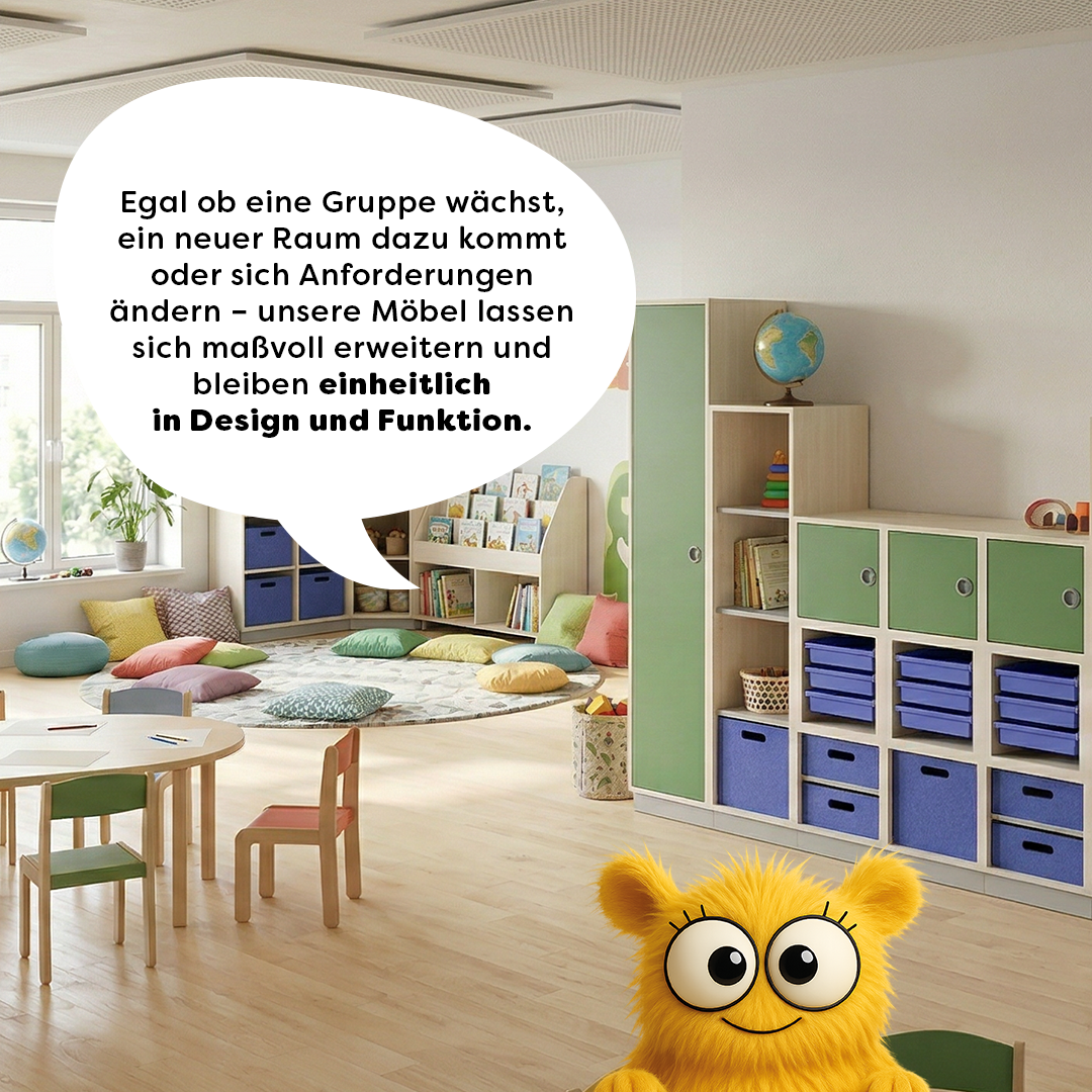 Ob Kindergarten, Kita oder Grundschule – Möbel von Möbelinio sind so gedacht, dass sie mitwachsen, mitdenken und sich flexibel an die Bedürfnisse der Kinder und der täglichen Abläufe anpassen.