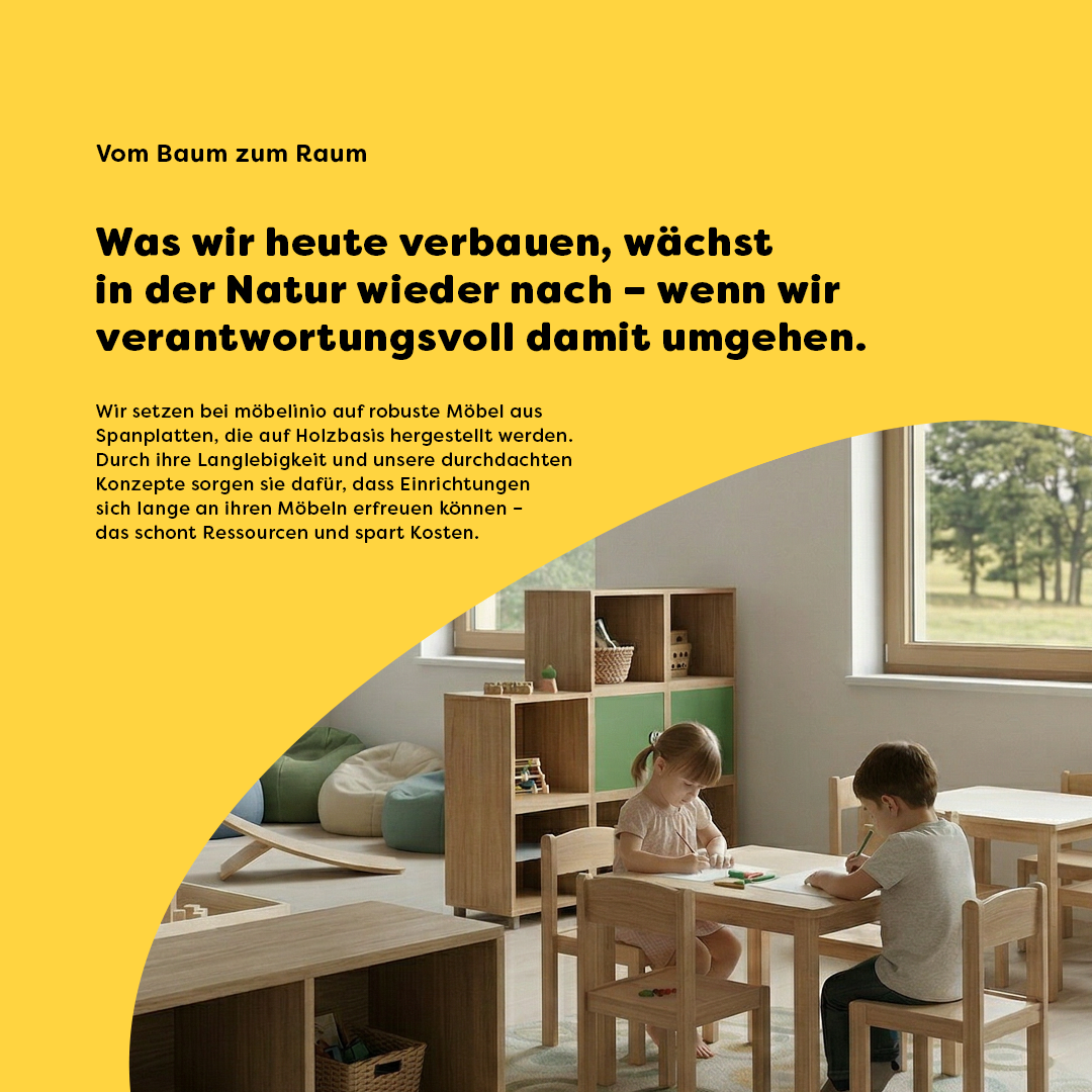 Nachhaltigkeit hört bei uns nicht beim Material auf – sie setzt sich in unserem gesamten Möbelkonzept für Bildungseinrichtungen fort.