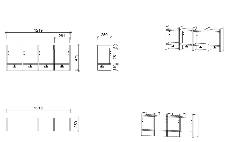 Garderobenablage | 4 Plätze | basic | 122 x 48 x 25 cm
