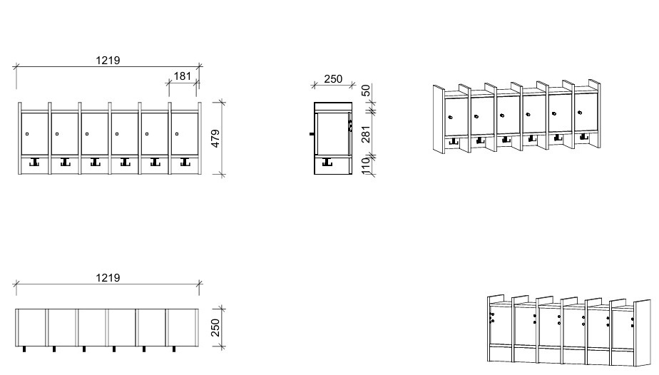 Garderobenablage | 6 Plätze und Tür rechts - Basic | 122 x 48 x 25 cm