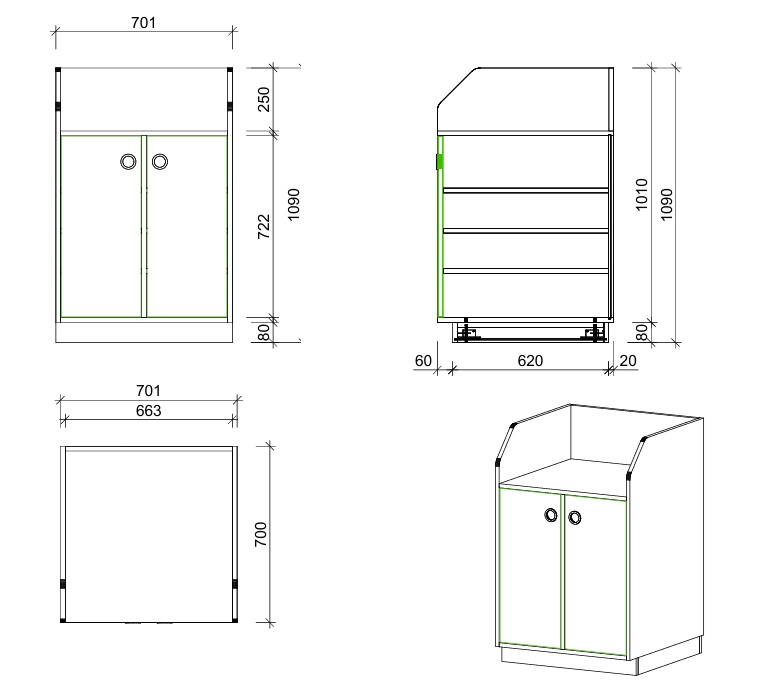 Die Wickelkommode unterstützt strukturierte und hygienische Pflegeabläufe. Materialien sind geschützt untergebracht und gleichzeitig schnell zugänglich. Die klare Organisation erleichtert den Arbeitsalltag und sorgt für ruhige, sichere Pflegesituationen.
