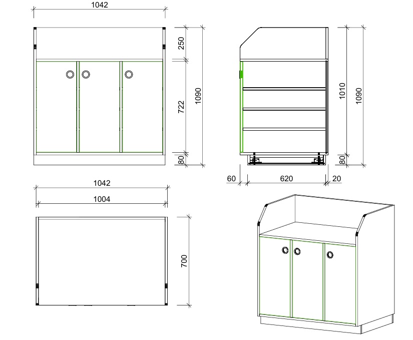Gefertigt aus melaminharzbeschichteter Spanplatte mit langlebigen ABS-Kanten. Hochwertige Beschläge und eine stabile Konstruktion gewährleisten eine dauerhafte Nutzung im anspruchsvollen Alltag von Krippe und Kita.