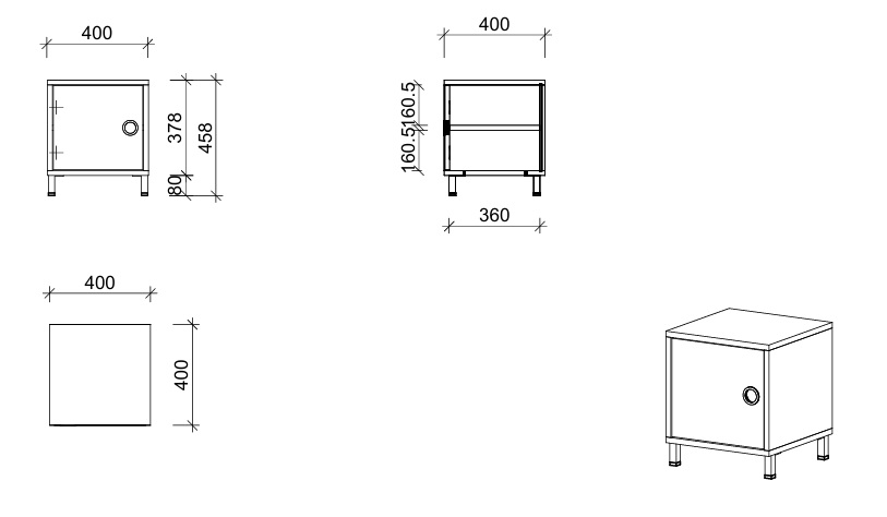 - Aufbewahrungswürfel mit Tür links und Möbelfüßen