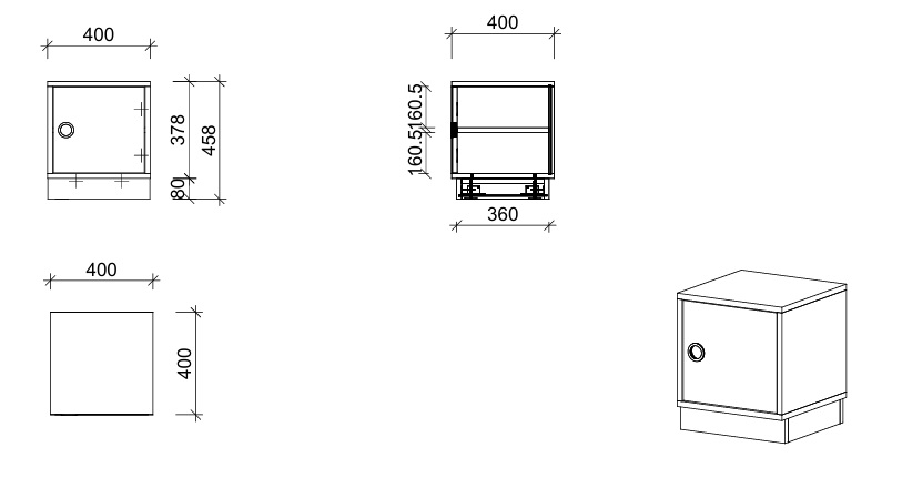 - Aufbewahrungswürfel mit Tür rechts und Sockelrahmen