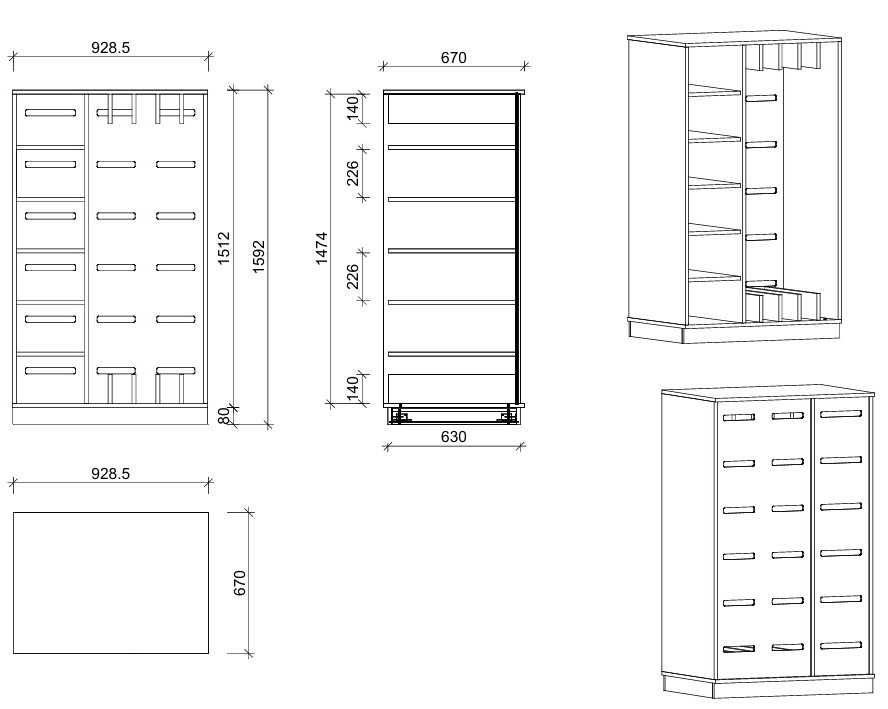 93 × 159 × 67 cm (B × H × T)