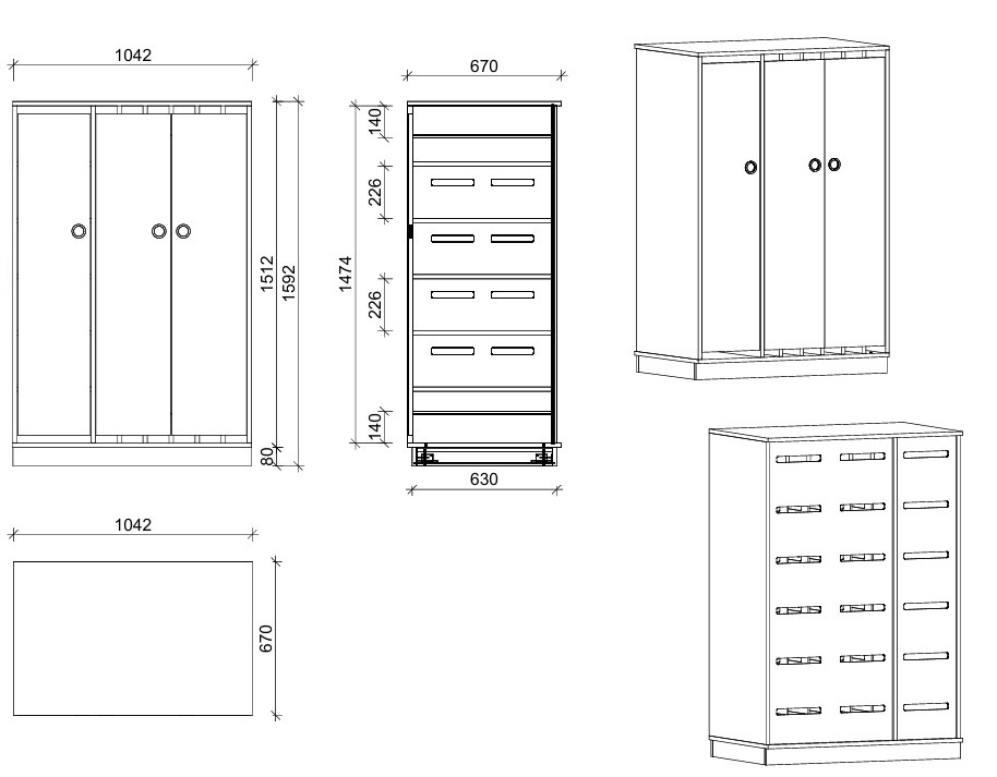 Die stabilen Türbeschläge sowie die belüfteten Türflächen unterstützen eine sichere Nutzung und eine hygienische Lagerung der Materialien.