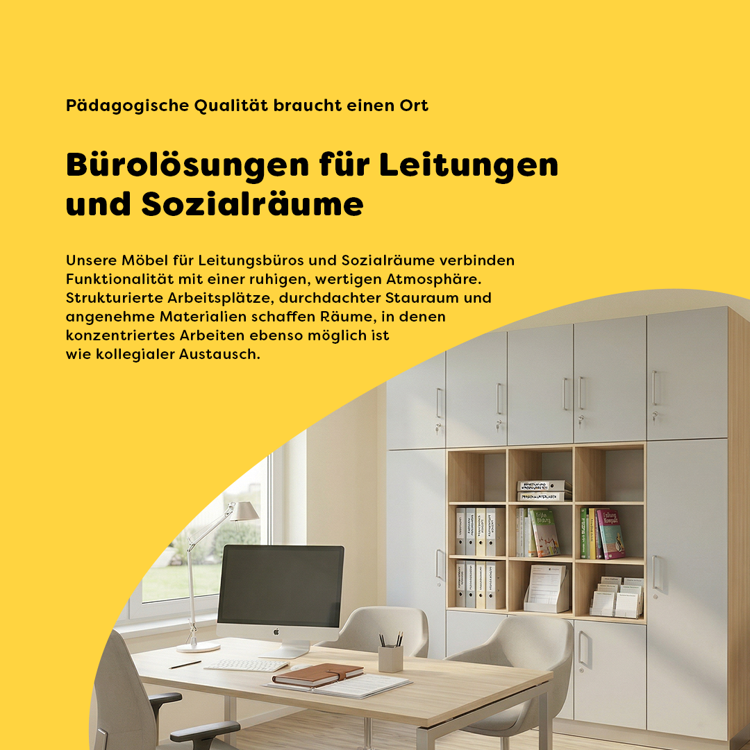 möbelinio Stauraumsystem Struktur schaffen, Orientierung ermöglichen: Das möbelinio Stauraumsystem unterstützt eine klare und zugängliche Organisation von Materialien in Kitas, Schulen und Bildungseinrichtungen. Offene Elemente fördern eigenständiges Handeln und erleichtern den direkten Zugriff auf Materialien. Durch die Kombination aus offenen und geschlossenen Möbeln entstehen strukturierte und gleichzeitig flexible Raumlösungen, die den pädagogischen Alltag unterstützen. Ein austauschbarer Sockelrahmen sorgt dafür, dass stark beanspruchte Bereiche langfristig instand gehalten werden können und unterstützt die Langlebigkeit im täglichen Einsatz. Regal mit 4 Fachböden – 60 × 197 × 40 cm Das offene Regal mit vier Fachböden nutzt die Raumhöhe effizient und bietet mehrere klar strukturierte Ablageflächen für Materialien, Bücher oder Lernmittel. Die offene Bauweise sorgt dafür, dass Inhalte jederzeit sichtbar und leicht zugänglich bleiben, was Orientierung im Raum unterstützt und eigenständiges Handeln erleichtert. Ausstattung & Funktion offenes Regal mit 4 verstellbaren Fachböden hohe Bauform für effiziente Nutzung der Raumhöhe klare Fachaufteilung für strukturierte Materialorganisation offene Fächer für direkten Zugriff auf Materialien kompakte Tiefe von 40 cm für platzsparende Integration melaminharzbeschichtete Oberfläche für den täglichen Einsatz robuste ABS-Kanten für langlebige Nutzung austauschbarer Sockelrahmen – bei Beschädigung einfach ersetzbar stabile Konstruktion für den dauerhaften Einsatz Mit seinen Maßen von 60 × 197 × 40 cm (BxHxT) eignet sich das Regal besonders für Materialzonen mit hohem Stauraumbedarf bei begrenzter Stellfläche. Die vier Fachböden ermöglichen eine differenzierte Organisation nach Themen, Projekten oder Nutzung. Material & Qualität Gefertigt aus melaminharzbeschichteter Spanplatte mit widerstandsfähigen ABS-Kanten sowie langlebigen Beschlägen für den intensiven Einsatz in Bildungseinrichtungen. Fachböden und Rückwand sind in Kaschmirgrau ausgeführt und sorgen für eine ruhige Innenwirkung. Der zurückgesetzte Sockelrahmen unterstützt die klare Gestaltung und erleichtert die Reinigung. Gestaltung & Dekor Erhältlich in den Korpusdekoren Weiß, Lichtgrau, Sandahorn, Buche hell oder Eiche natur und damit optimal kombinierbar für stimmige und ruhige Raumkonzepte in Bildungseinrichtungen. Die Fronten und Zubehör wählen Sie entsprechend ihrem individuellen Farbkonzept. Besonderheiten effiziente Nutzung der Raumhöhe vier klar strukturierte Fachebenen offene Aufbewahrung für schnelle Orientierung platzsparende Tiefe von 40 cm austauschbarer Sockelrahmen für einfache Instandhaltung Einsatz im Alltag Das Regal unterstützt eine strukturierte Materialorganisation und eigenständige Nutzung. Materialien bleiben sichtbar, zugänglich und lassen sich klar in Kategorien einteilen. Typische Einsatzbereiche: Gruppenraum, Kreativbereich, Materialzonen, Nebenräume, Lernbereiche, Flur.