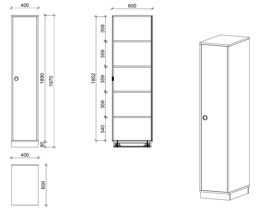 Schrank | mit Tür rechts – Basic | 40 × 197 × 60 cm